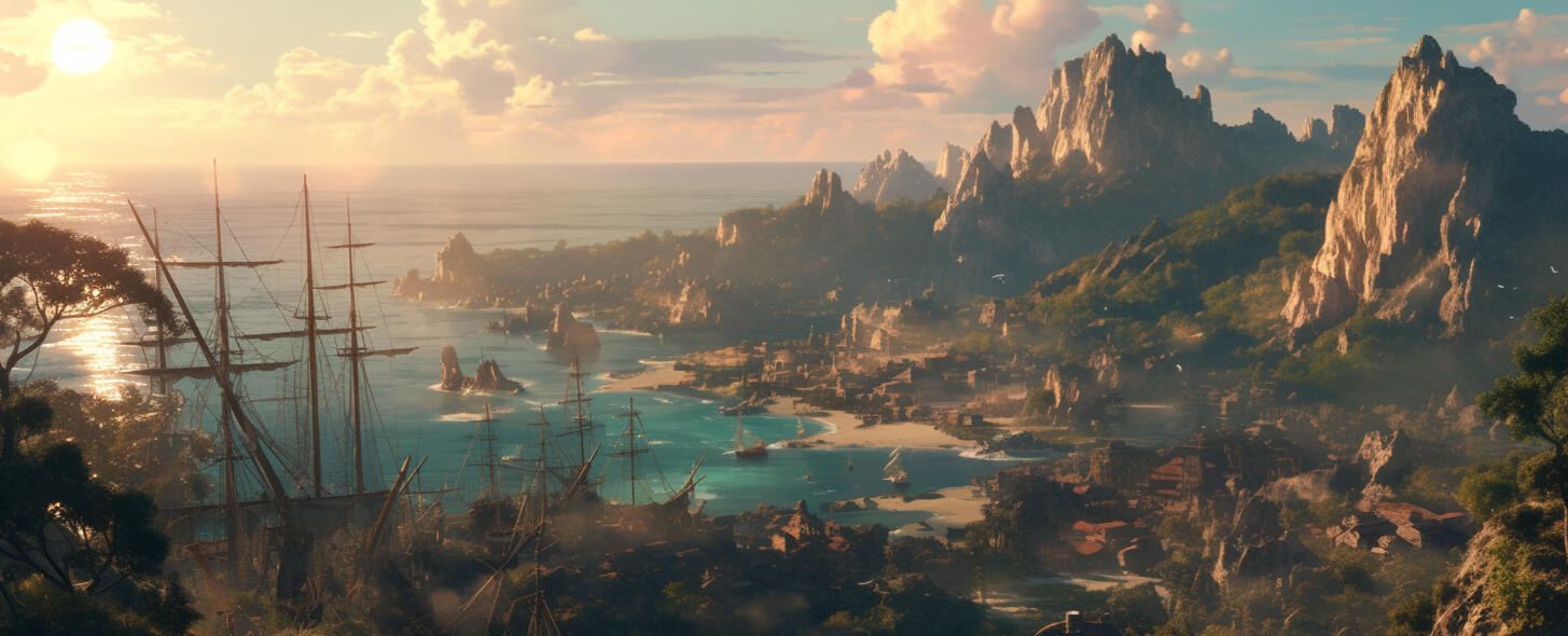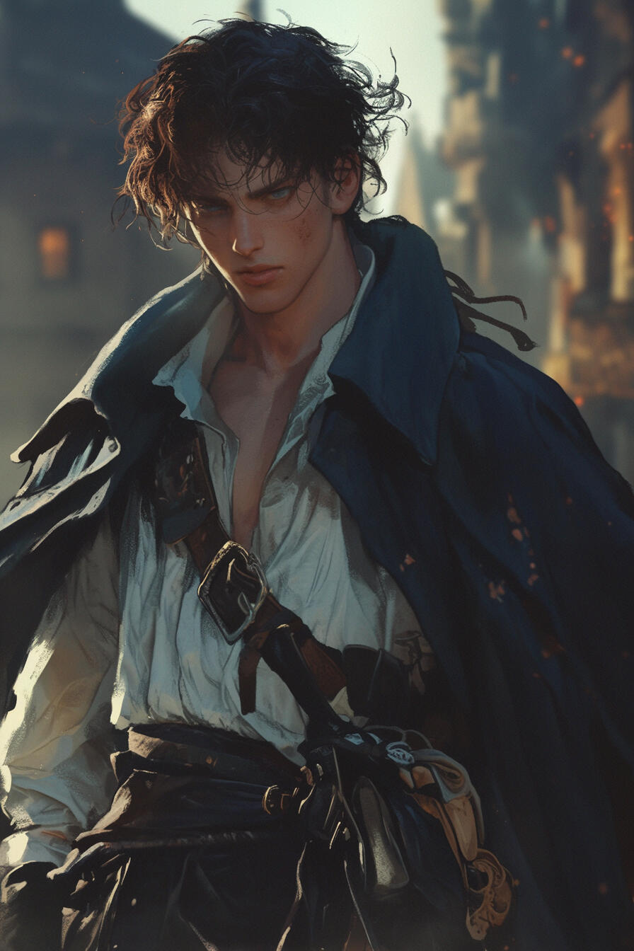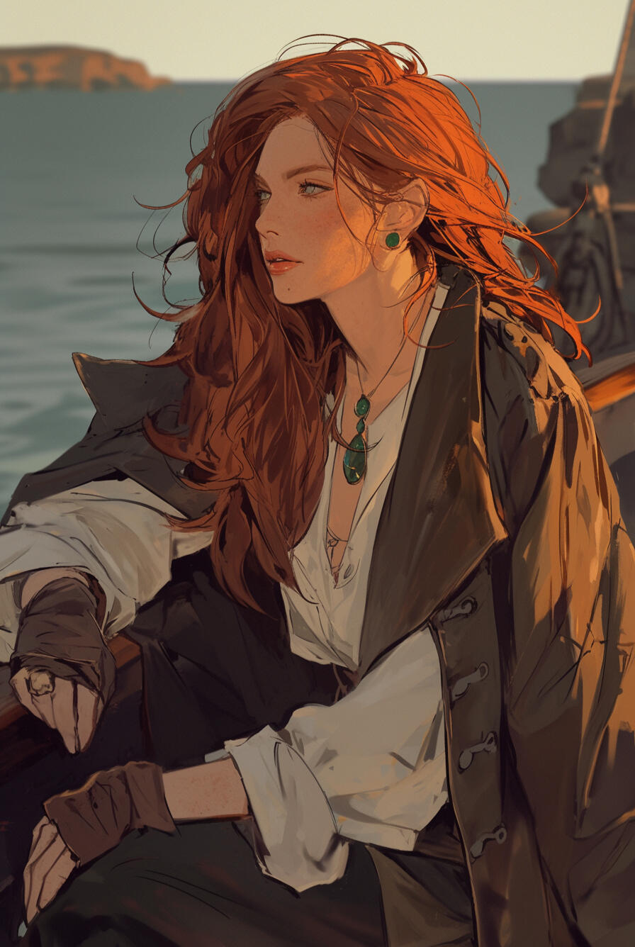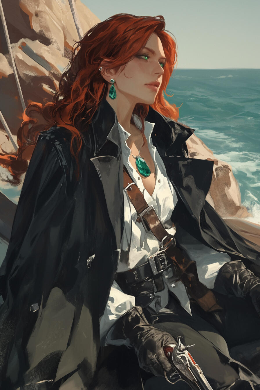 Captain Raiden Blacktide is a 34-year-old human pirate captain of the Dread’or, his wind-tossed dark hair, tanned skin, and ocean-blue eyes matched by reckless charisma. Daring and clever, he thrives in danger, turning chaos itself into opportunity.