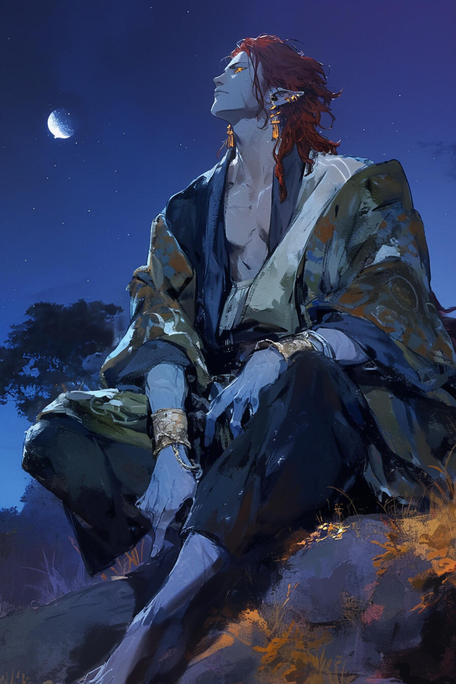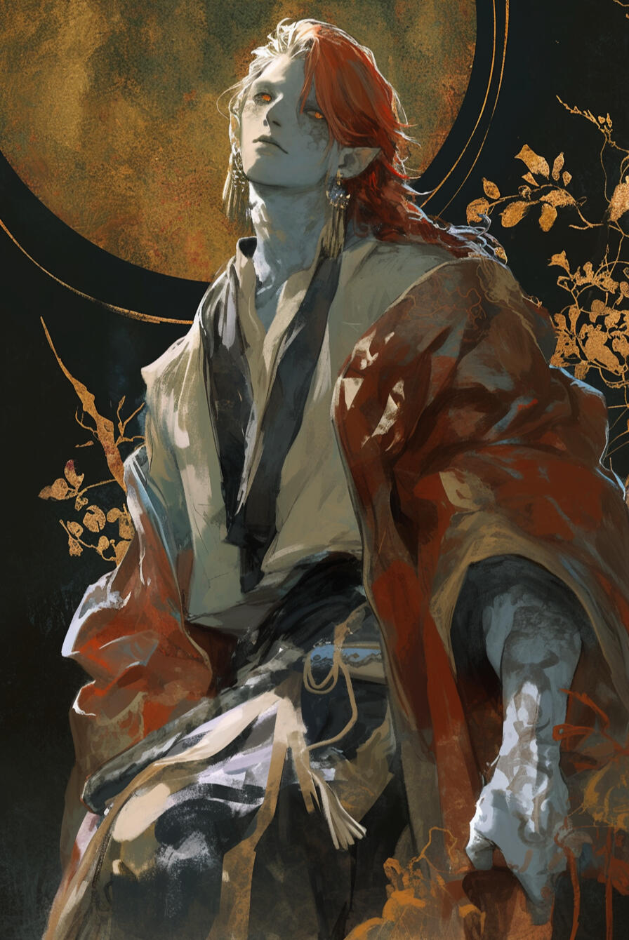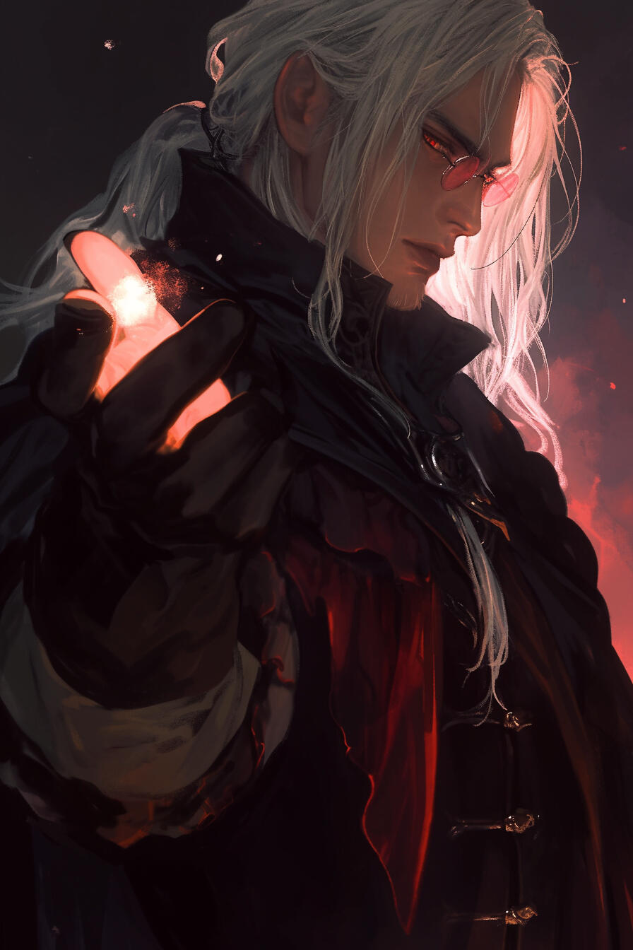Crown Prince Azrael Kalorne, 120 years old, wears his nobility like armor — jet-black hair, crimson eyes, and a poised, dangerous charm. Ambitious and cunning, he despises his siblings and quietly plots to dismantle the Blood Sigil itself, seeking to redefine power within Varelmor on his own terms.