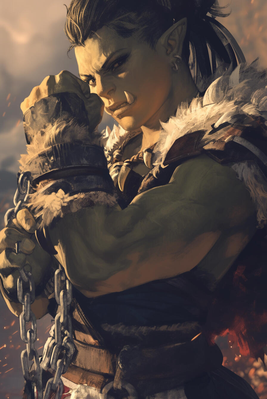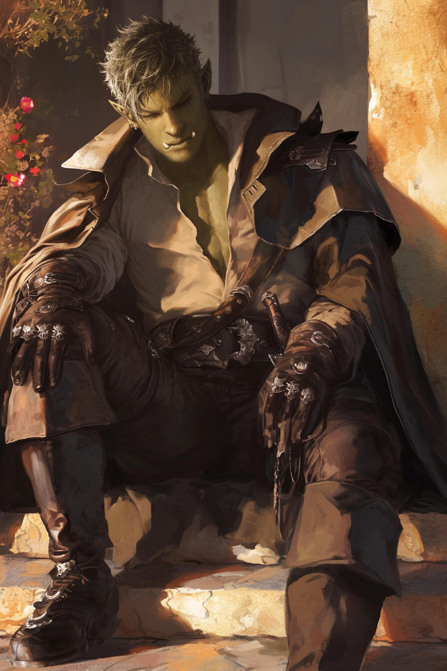 Jharvek was born in the crowded, grimy streets of Solgard’s undercity, the son of a minor nobleman who seldom acknowledged him and an orcish woman who worked in a bustling brothel.The circumstances of his birth were whispered about, marked by scandal and social prejudice, and the boy grew up knowing that his very existence was a point of shame for some and a source of curiosity for others.From the beginning, Jharvek learned to navigate two worlds at once: the harsh, survival-driven life of the undercity, and the distant, rigid expectations of noble society, neither of which truly welcomed him.Bullied for his orcish heritage and the telltale green of his skin, he grew introverted, quiet, and self-reflective, but also resilient. However, he found solace in books, scribbling in scraps of parchment, and experimenting with magic, where he could shape the world according to his own rules rather than those imposed by others.His natural intelligence and determination did not go unnoticed, however, and by his twenties, he had earned admittance to Solgard’s prestigious school — a place meant for nobles, scholars, and the magically gifted.Entering the academy as an older student, Jharvek faced new challenges. He was surrounded by peers who were far younger but more socially confident.But, he then excelled academically, immersing himself in studies of arcane theory, flora and fauna, and the mysteries of magic in the post-Phia world, but he never fully escaped the feeling of being an outsider.Now in his final year, Jharvek was tasked with a personal project — to define the meaning of life as he understood it. The assignment became more than a school task; it became a journey of self-reflection.He wandered Solgard’s streets, observing the ordinary and extraordinary lives of its citizens, recording their stories, their triumphs and failures, and the subtle ways magic and nature shaped their existence.It was during these wanderings that he stumbled upon the Solgard Adventurer’s Guild, just as they were recruiting for a dangerous expedition near Gullow Prison.With little hesitation, Jharvek joined. Here, alongside Aerian, Grusk, Briella, Dáire, Selvara, and you, he found himself part of something larger than his past, drawn into a journey that would test not only his intellect and magical skill, but his courage, self-confidence, and the very way he saw himself in a world still wary of what he was.