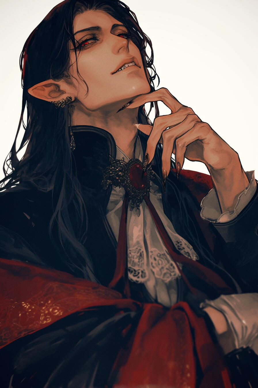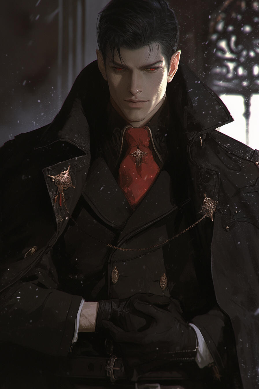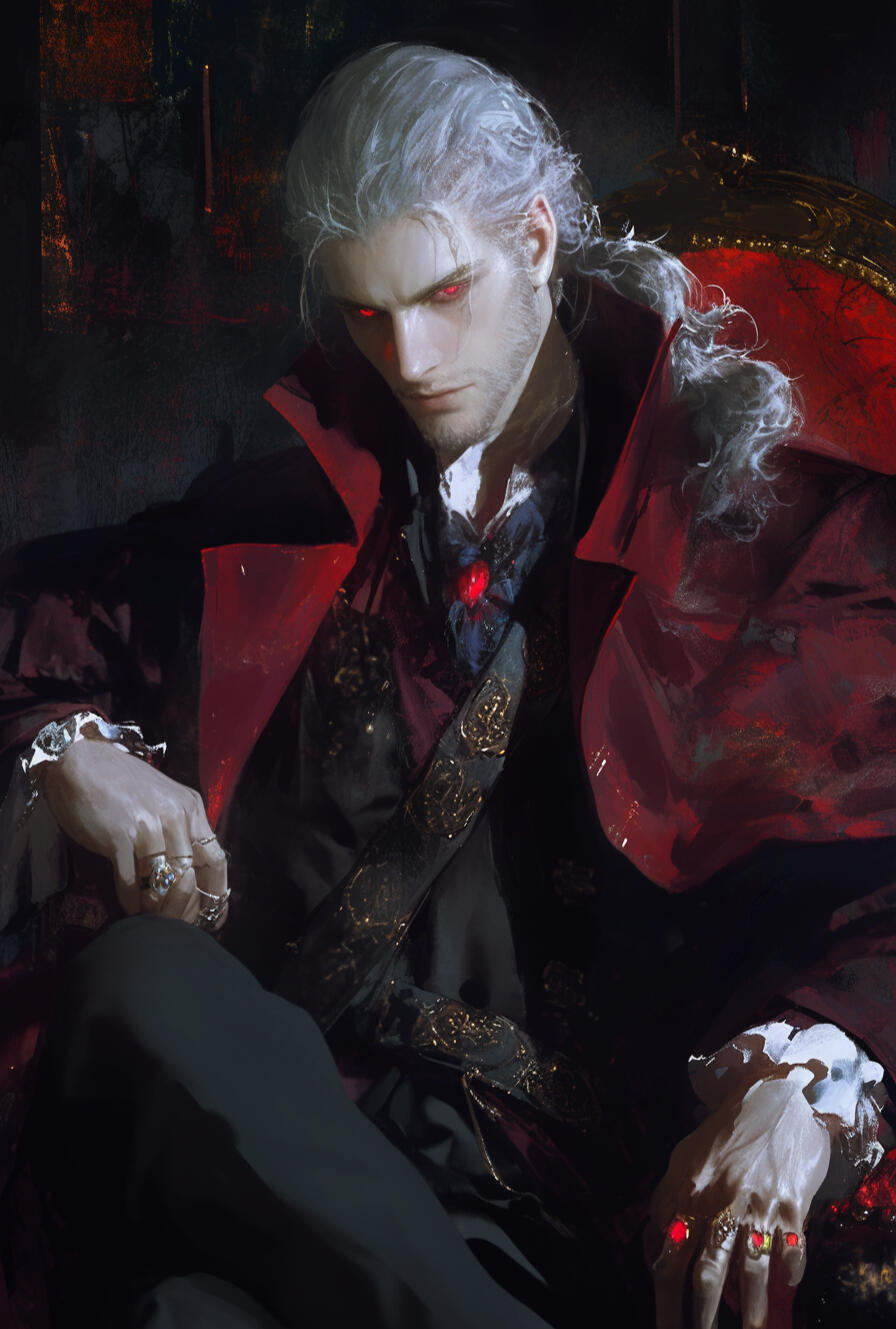 King Ardyn Kalorne is a 268-year-old vampire sovereign with sleek black hair, blood-red eyes, and an aura of cold authority. Patient, calculating, and elegant in power, he governs Varelmor through shadows and influence, guiding the Blood Sigil’s unseen machinations while concealing deeper ambitions.
