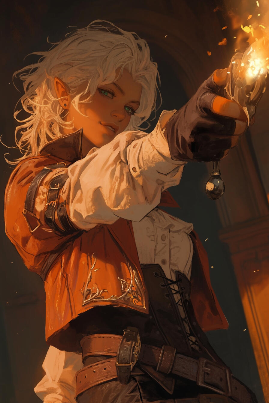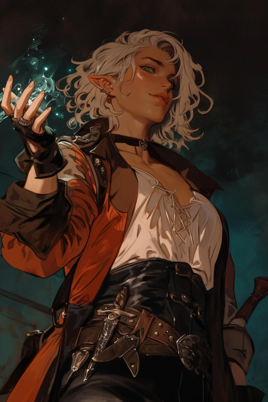 Aethor is sharp, volatile, and intensely self-aware, approaching the world with a mix of curiosity and provocation rather than caution. His mind moves quickly, often several steps ahead, and he delights in testing limits—his own and everyone else’s—partly out of boredom and partly out of a deep-rooted need to prove himself.Socially, Aethor is theatrical and cutting, using wit, mockery, and charm as both shield and weapon. He enjoys needling authority figures and unsettling those who expect deference, masking lingering insecurities about his half-elven blood and constant comparison to his sister behind humor and calculated arrogance. Confrontation does not intimidate him; if anything, he welcomes it, treating tension as a form of entertainment.In action, Aethor is decisive and unapologetically aggressive, favoring speed, pressure, and overwhelming force over patience or restraint. He dislikes hesitation and has little tolerance for moral grandstanding, believing results matter more than appearances. Once committed to a course of action, he pursues it relentlessly, even at personal cost.Beneath the bravado lies a stubborn, unyielding core. Aethor despises being underestimated and quietly fears being forgettable, driving him to leave an undeniable mark on the world. Adventure, for him, is not about discovery or heroism, but about proving—again and again—that he is more than the compromise others see when they look at him.