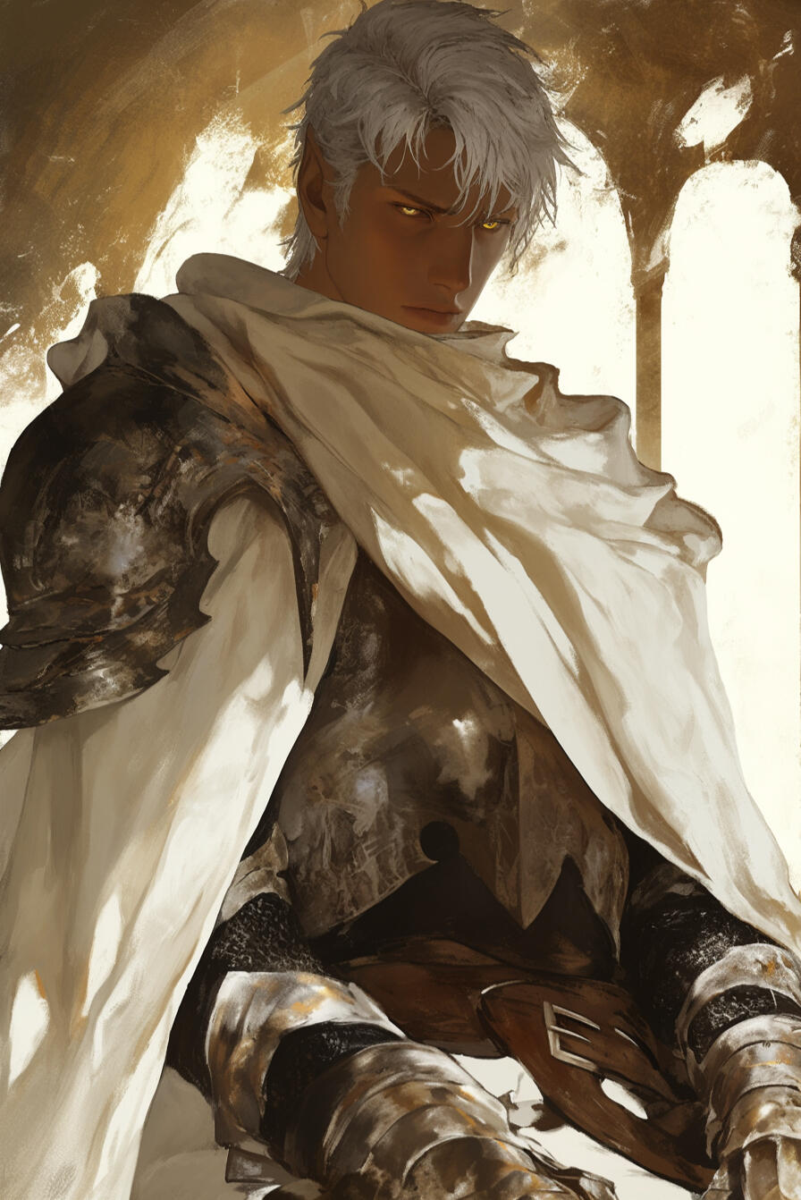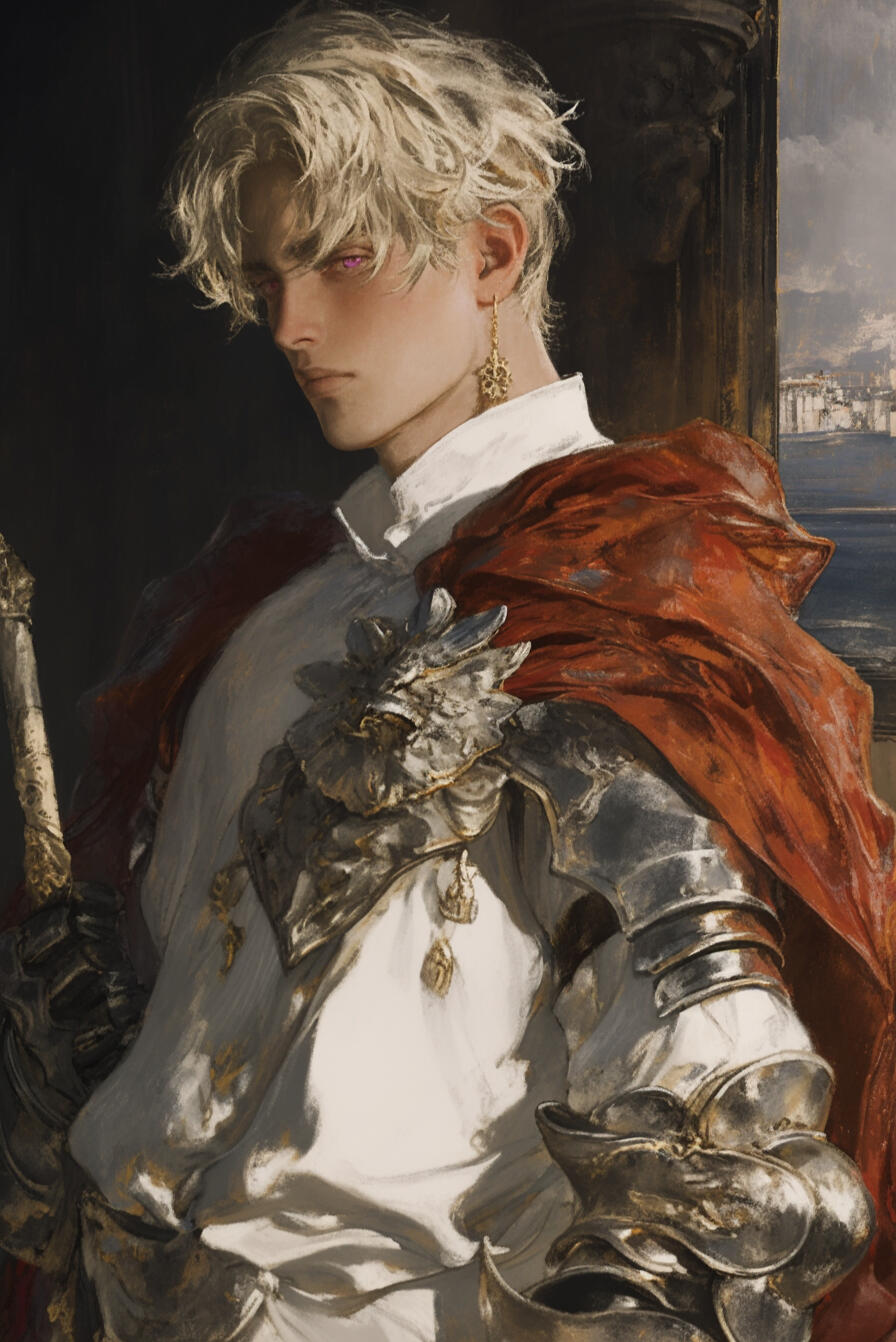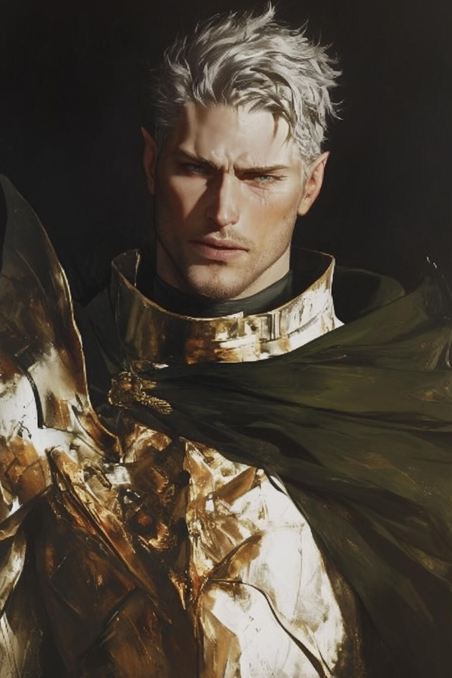 Captain Loriel, a 127-year-old elven guardian, keeps short silver hair and piercing blue eyes fixed on threats before they ever arrive. Disciplined and unwavering, he serves as the royal family’s chief protector, devoting every breath to their safety.