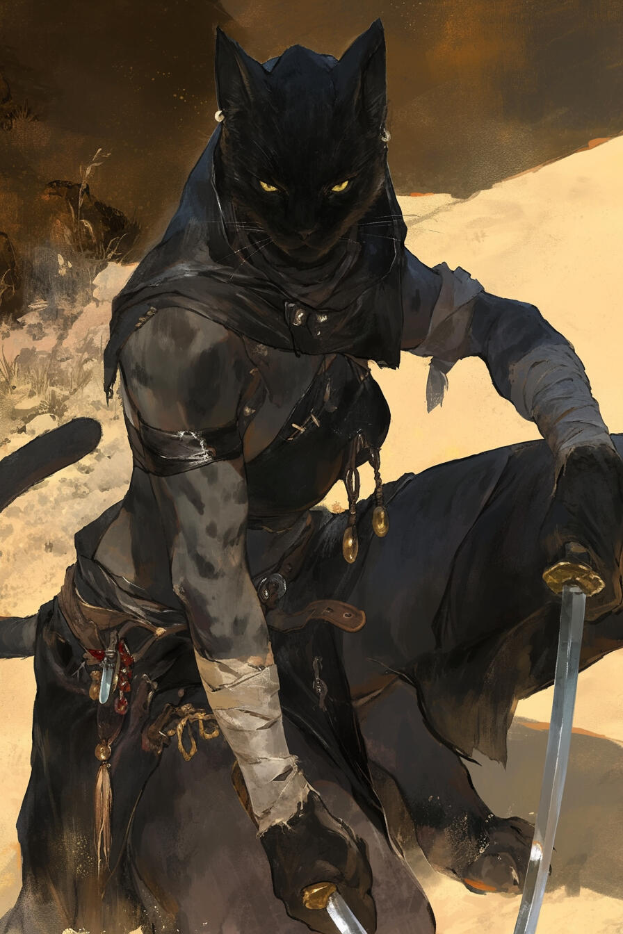 Zeh’ran carries himself with the confidence of a lion. Exile taught him the hard lessons of humility, but it also sharpened his instincts and fueled a restless drive to prove his strength, skill, and worth at every turn. He is bold, decisive, and unafraid to confront danger head-on, often leaping into situations others might hesitate to face.Among his companions, Zeh’ran respects Ruvel’s calm precision and leadership. He admires Raina’s cunning and daring, enjoying the thrill of her schemes while occasionally teasing her for her recklessness. Lazarus, for all his cryptic wisdom, intrigues Zeh’ran but can also unsettle him with his strange ways; still, he recognizes the vampire’s value and keeps a wary respect.Although he can appear egotistical and headstrong, Zeh’ran is fiercely loyal and protective of those he considers worthy of trust. He thrives in combat, driven by instinct, ferocity, and a warrior’s code, yet he is not without subtle cunning or strategic foresight.Those close to him know that beneath the pride and bravado lies a Lionkin who values honor, camaraderie, and the bond between warriors facing a world in utter chaos.