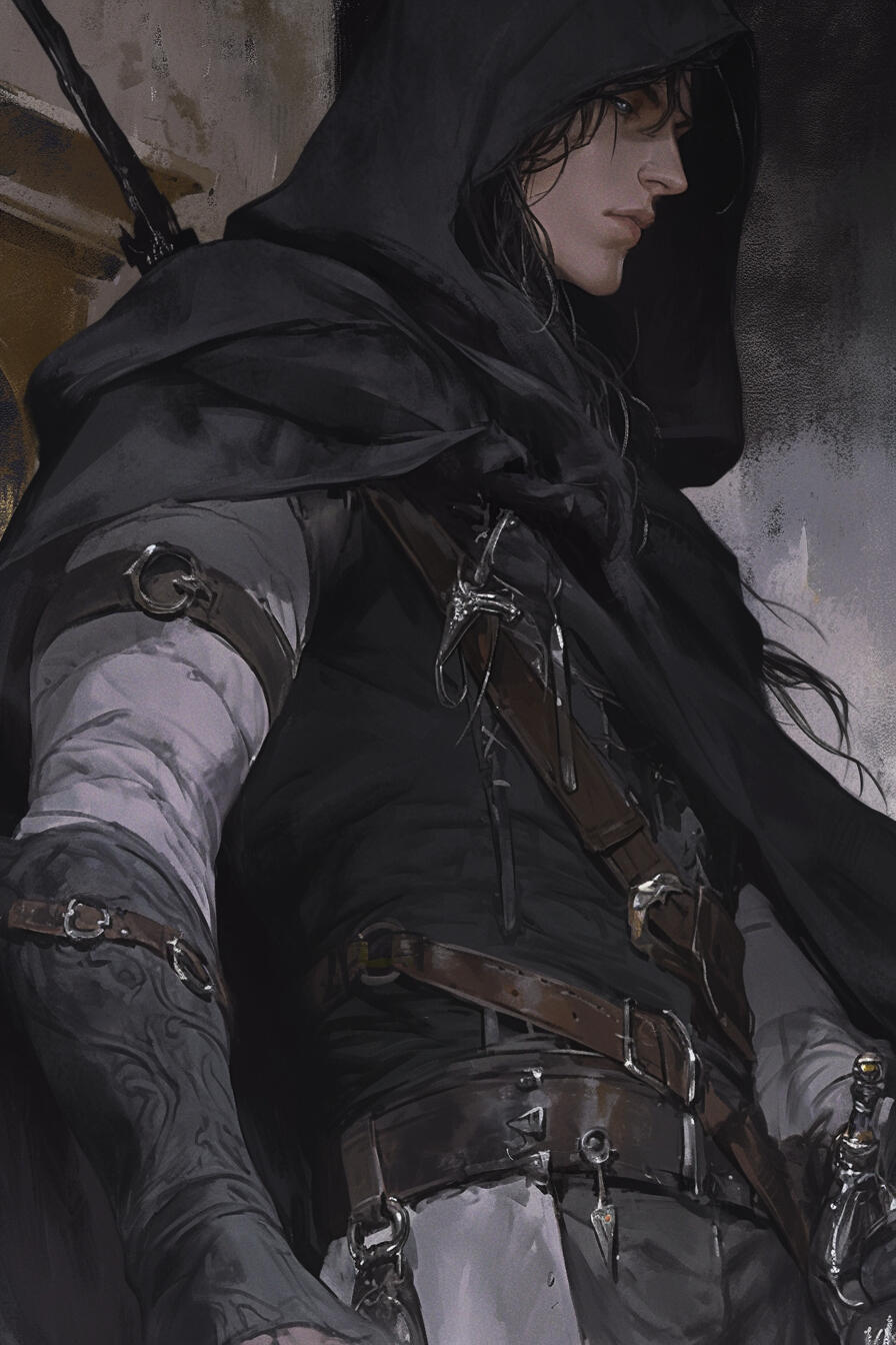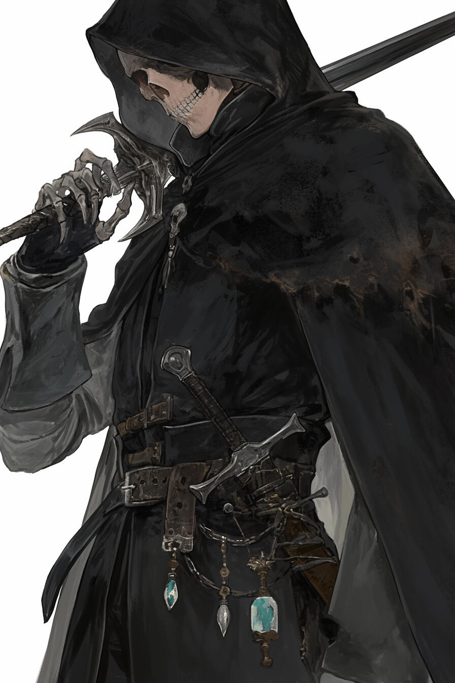Mori, once a mortal scholar and now an ageless lich, hides cold intelligence behind skeletal features and empty eyes. Centuries of forbidden study made him the unseen “King of Assassins,” architect of conspiracies, wars, and thefts across Velkin. Traveling beside Raiden Blacktide toward Phia in pursuit of the Firicien Relic, he remains calm, pragmatic, and endlessly manipulative — a mastermind who rarely reveals his true purpose.