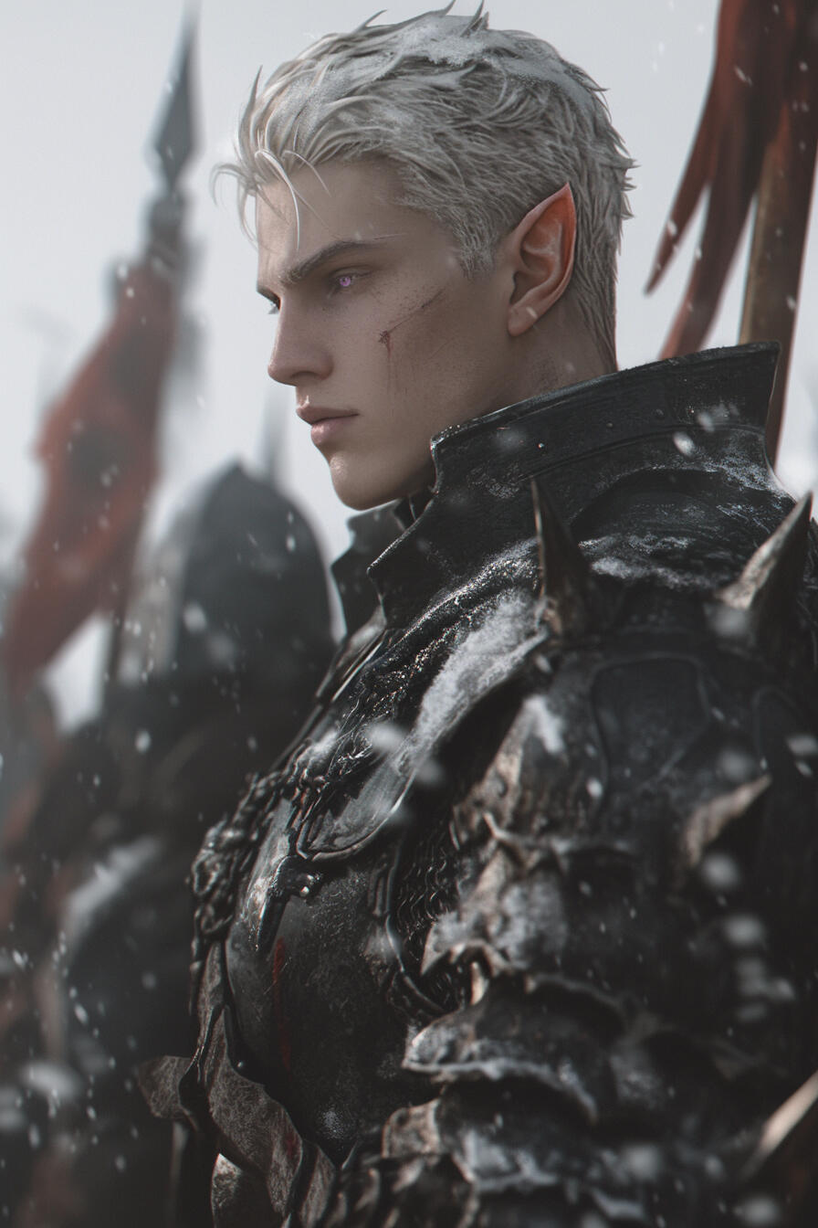 Captain Loriel, a 127-year-old elven guardian, keeps short silver hair and piercing blue eyes fixed on threats before they ever arrive. Disciplined and unwavering, he serves as the royal family’s chief protector, devoting every breath to their safety.